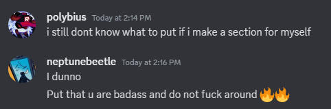 - be normal about our fictives. dont talk to us about ships or other fandom shit without asking first. we want to live our life in peace, same as you.you can view current fronter here (pluralkit)
